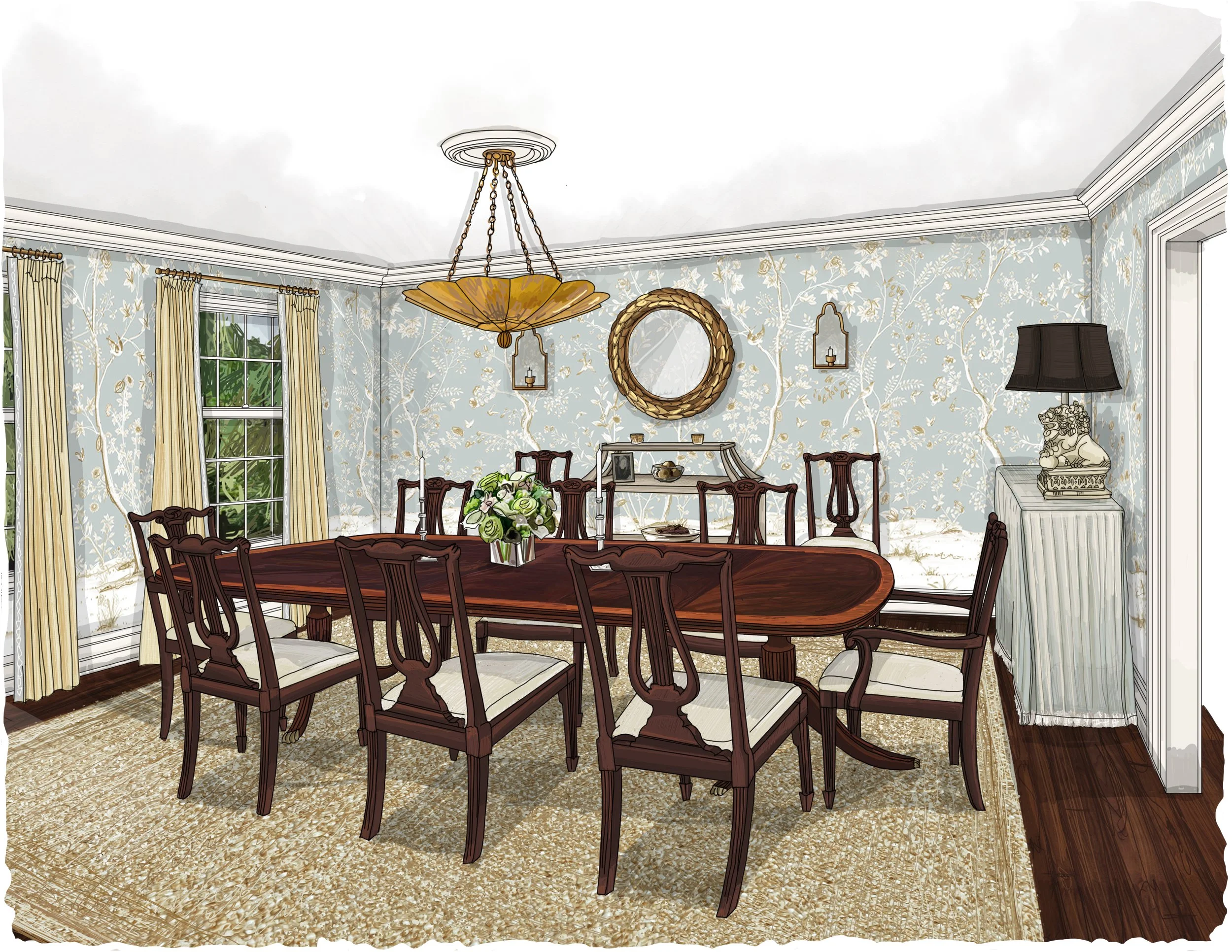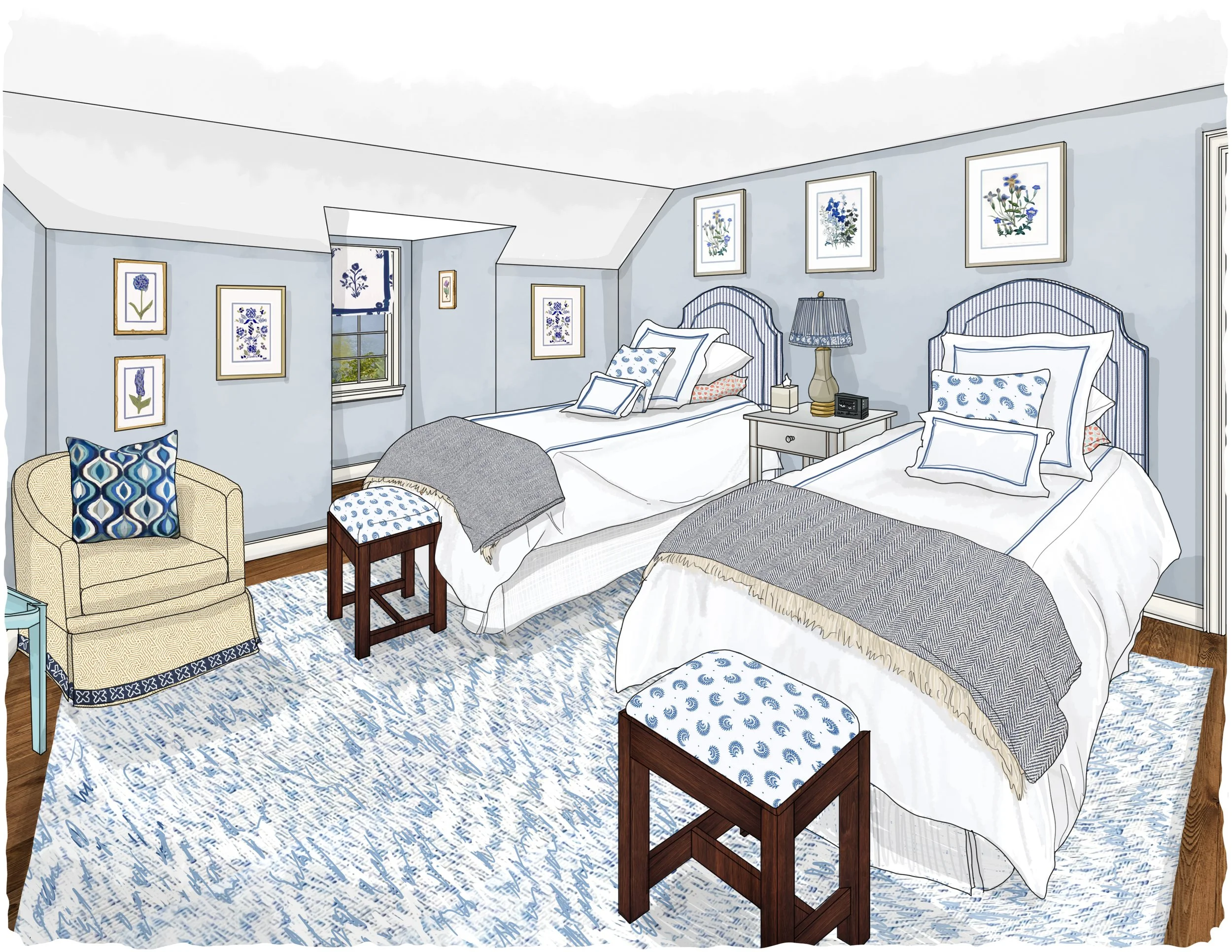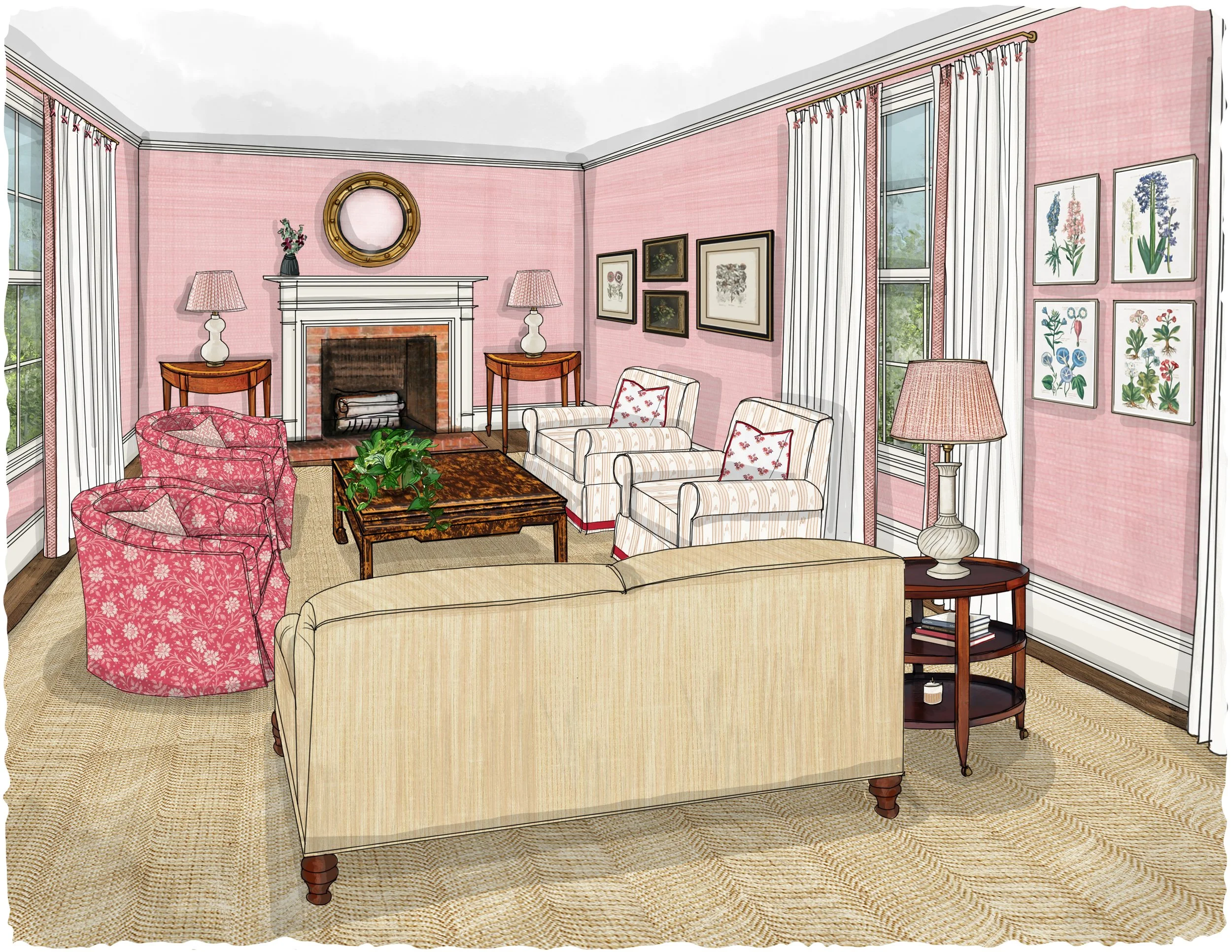 Designs by Baxter Design | Hand Drawn Renderings by Amy Archambault Studio